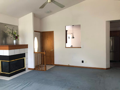 The living room has vaulted ceilings and a door that leads to the patio. Warm your bones with the cozy gas fireplace that can heat the room up in a hurry.